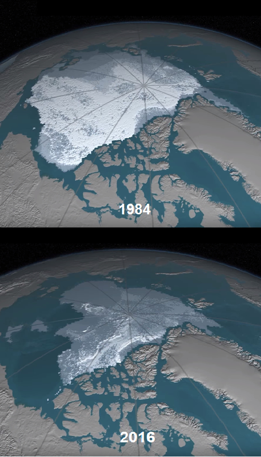 С 1979 по 2020г.г. величина ледяного покрова в Арктике сократилась на ~50% и продолжает сокращаться примерно на 13% за десятилетие. Если темпы производства тепловой энергии в мире останутся хотя бы на прежнем уровне, то оставшиеся 50% льда мы растопим еще за 40 лет. Далее нас ожидают поистине катастрофические изменения климата, сопоставимые с катастрофой планетарного масштаба!